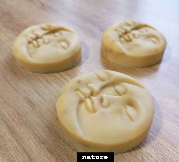 En ne chauffant pas la pâte à savon, cette technique permet de garder la glycérine (naturellement produite pendant la saponification) et préserve les qualités des huiles biologiques utilisées.