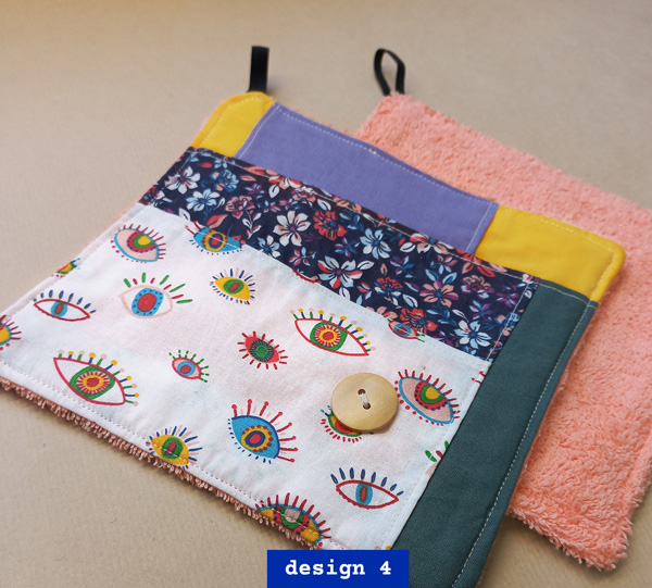 L’autre côté (avec motif) est un patchwork de tissus coton cretonne labellisés Oeko-Tex.